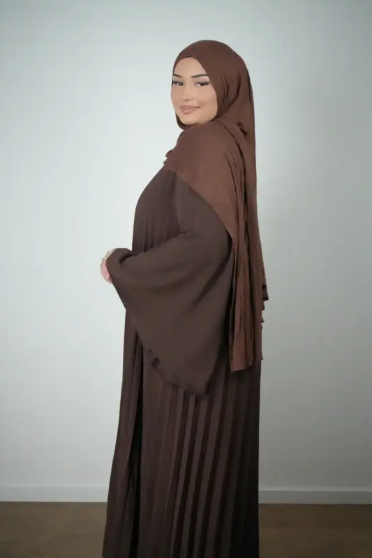 Unser Abaya & Khimar Set bietet Dir ein perfekt aufeinander abgestimmtes Ensemble: Die fließende Abaya aus hochwertigem Polyester wird durch den passenden Khimar ergänzt und sorgt für einen harmonischen, eleganten Look. Die dezente Raffung an der Taille verleiht dem Set eine schmeichelhafte Silhouette. Ob für das Gebet, den Alltag oder besondere Anlässe – dieses Set vereint Bescheidenheit mit zeitloser Eleganz.