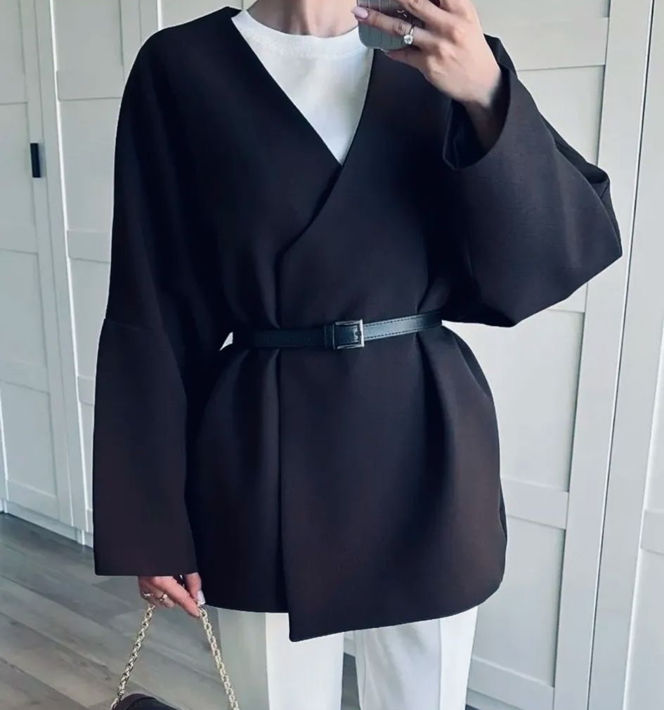 Unser Gürtel-Mantel ist ein stilvoller Allrounder für die kühlere Jahreszeit: Der angenehm dicke Polyesterstoff hält warm und sorgt gleichzeitig für einen eleganten Fall. Dank des lockeren Schnitts und des abnehmbaren Gürtels lässt sich die Jacke individuell taillieren und vielseitig kombinieren – ob casual oder schick. Ein zeitloses Piece für Herbst und Winter.